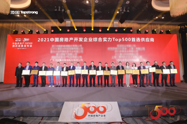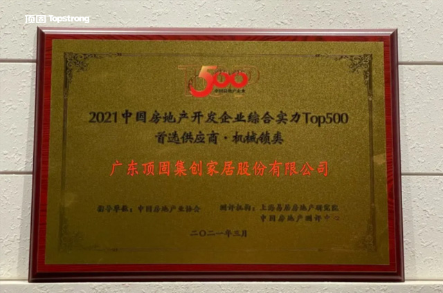 顶固从众多品牌中脱颖而出,赢得了中国房地产行业的高度认可,荣获2021中国房地产开发企业综合实力TOP500机械锁类以及橱柜类首选供应商品牌两大殊荣,见证了顶固超高的工程市场占有率以及卓越的口碑。