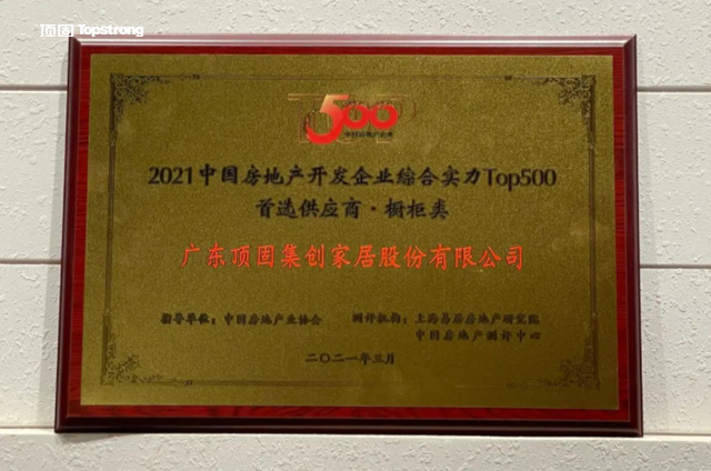 △顶固荣获中国房地产开发企业综合实力TOP500橱柜类首选供应商品牌
