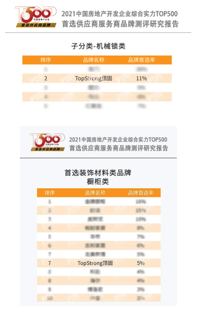 △顶固荣获中国房地产开发企业综合实力TOP500机械锁类首选供应商品牌