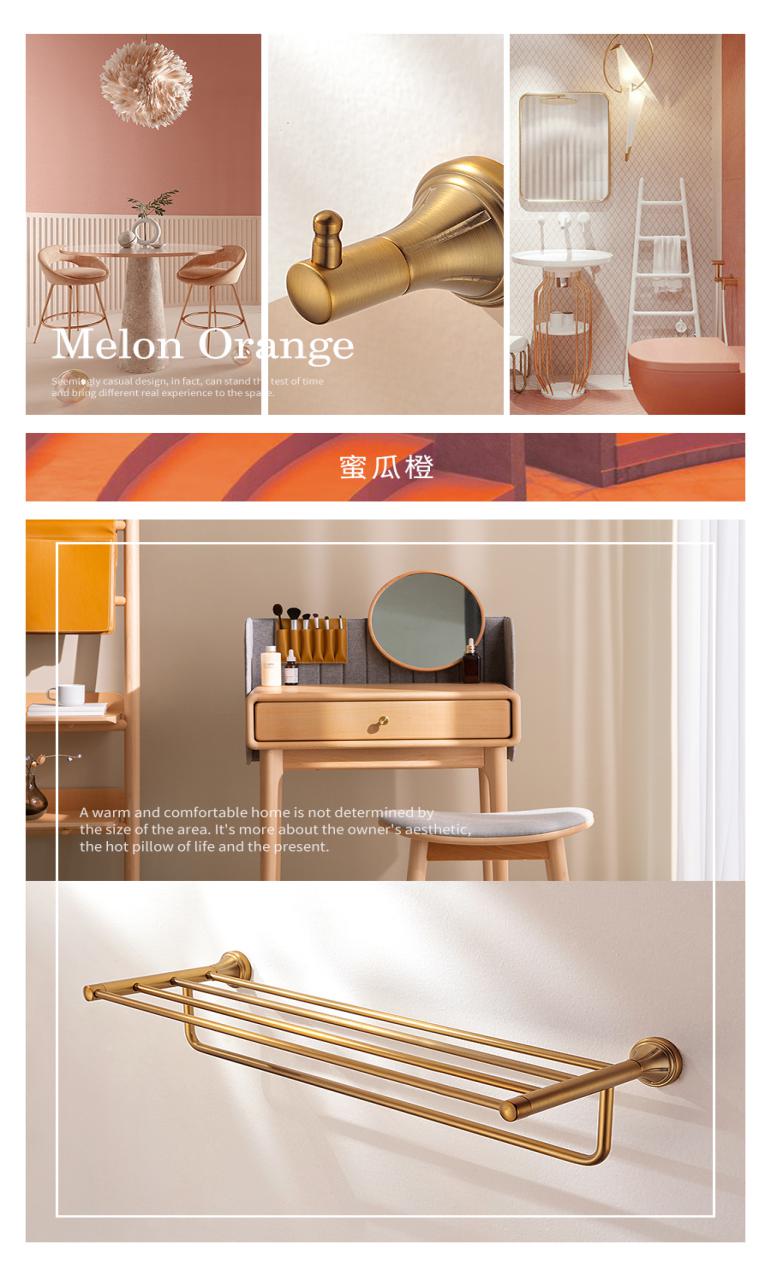 2020年春夏流行色:薄荷绿、清水蓝、黑加仑紫、蜜瓜橙、古金黄。 面对这么多好看的颜色,要是运用在卫浴家居,那小小的五金配套挂件该如何搭配呢?