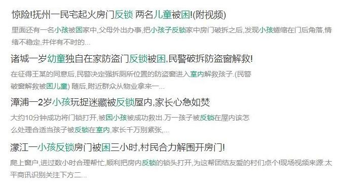 在网上随意搜索“儿童 反锁”,就会弹出许多相关的新闻。