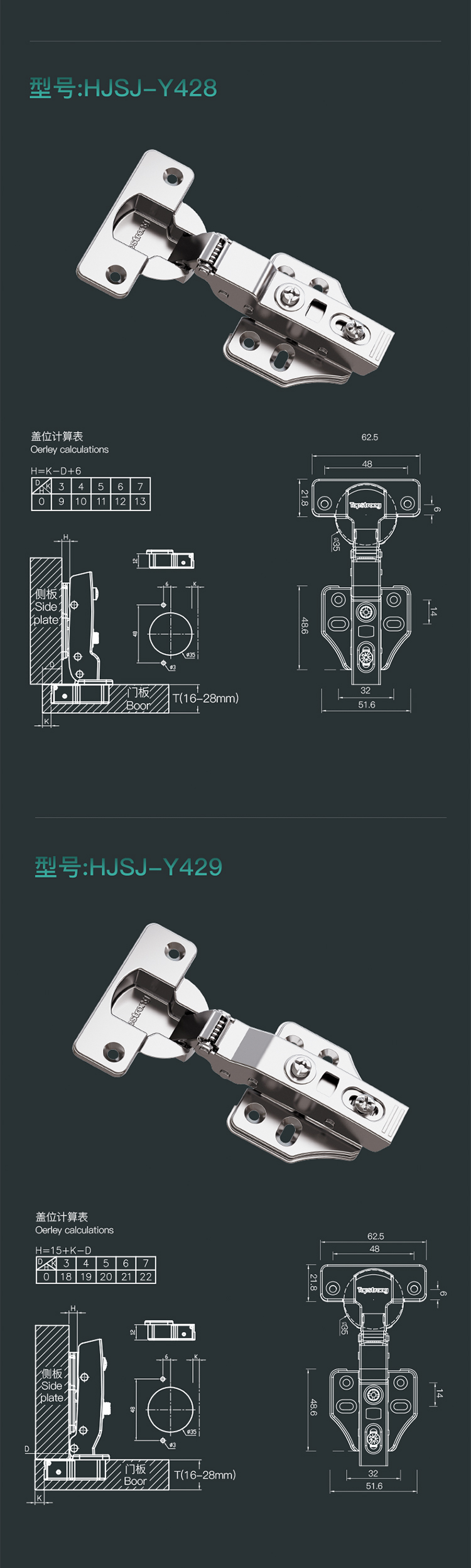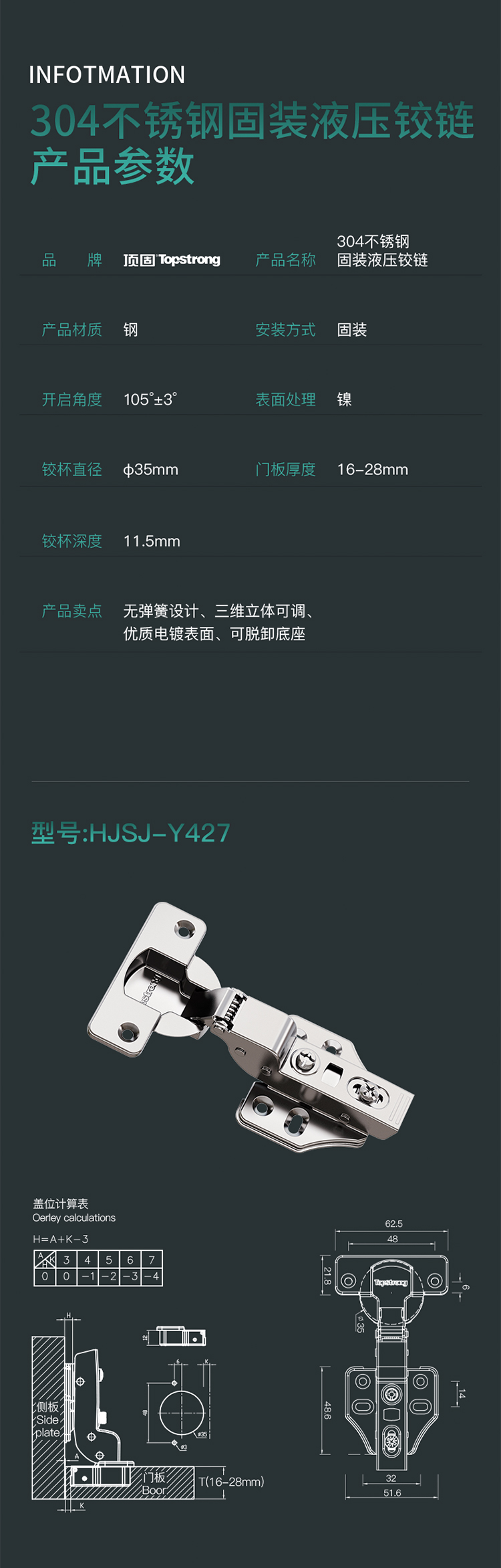 Y429顶致系列304不锈钢固装液压铰链