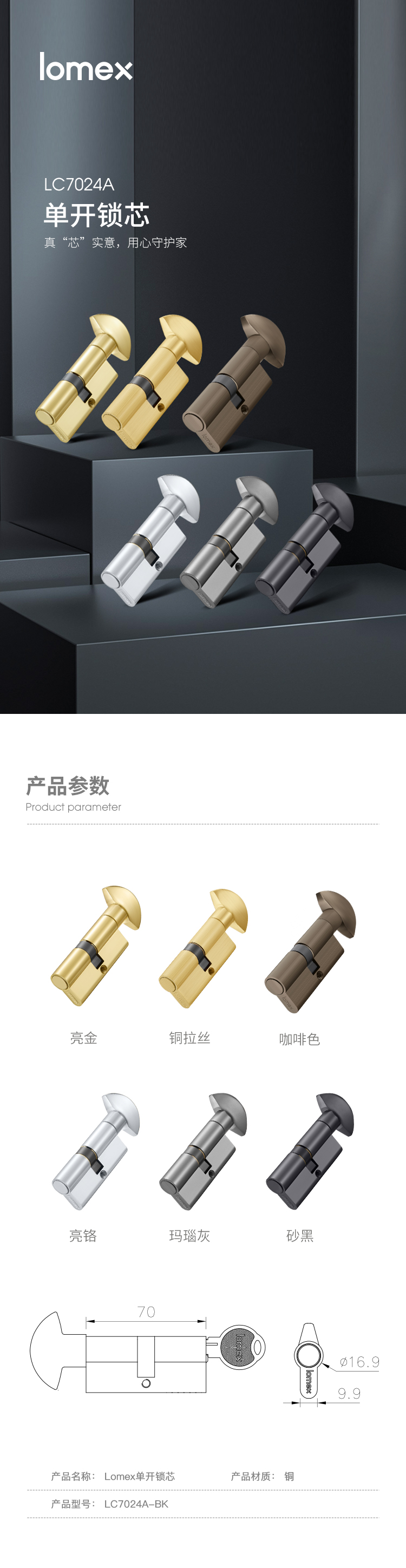 7024ALomex单开BK锁芯