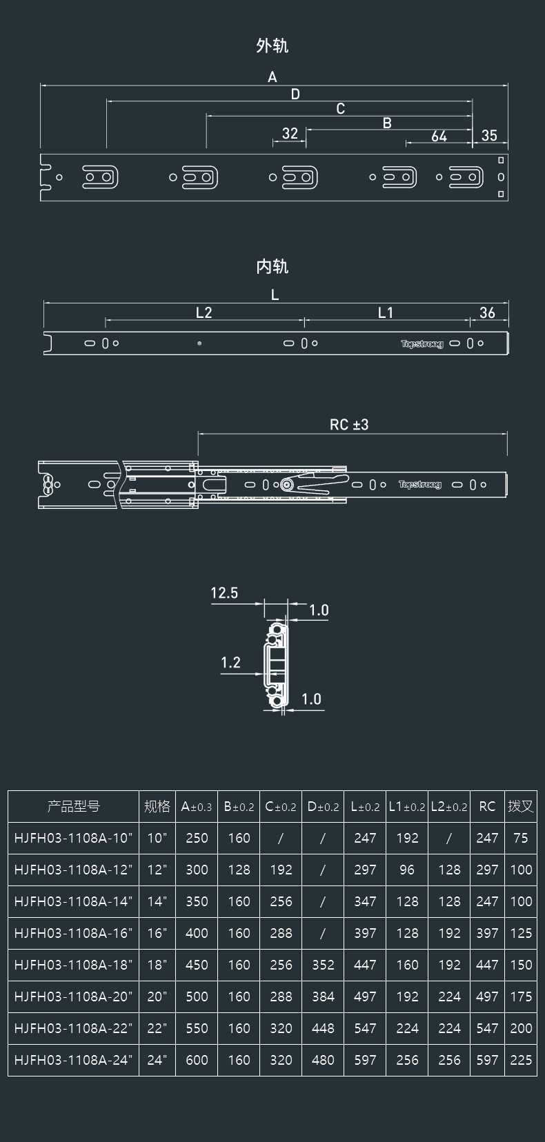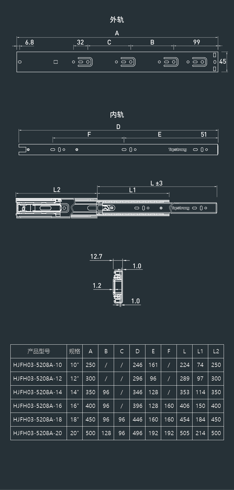 1108A/5208A金刚系列钢珠/缓冲轨