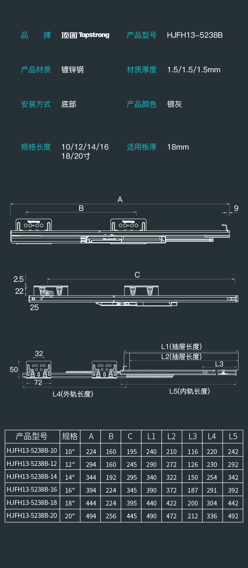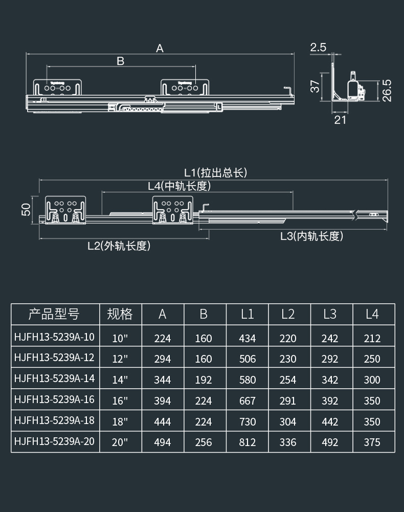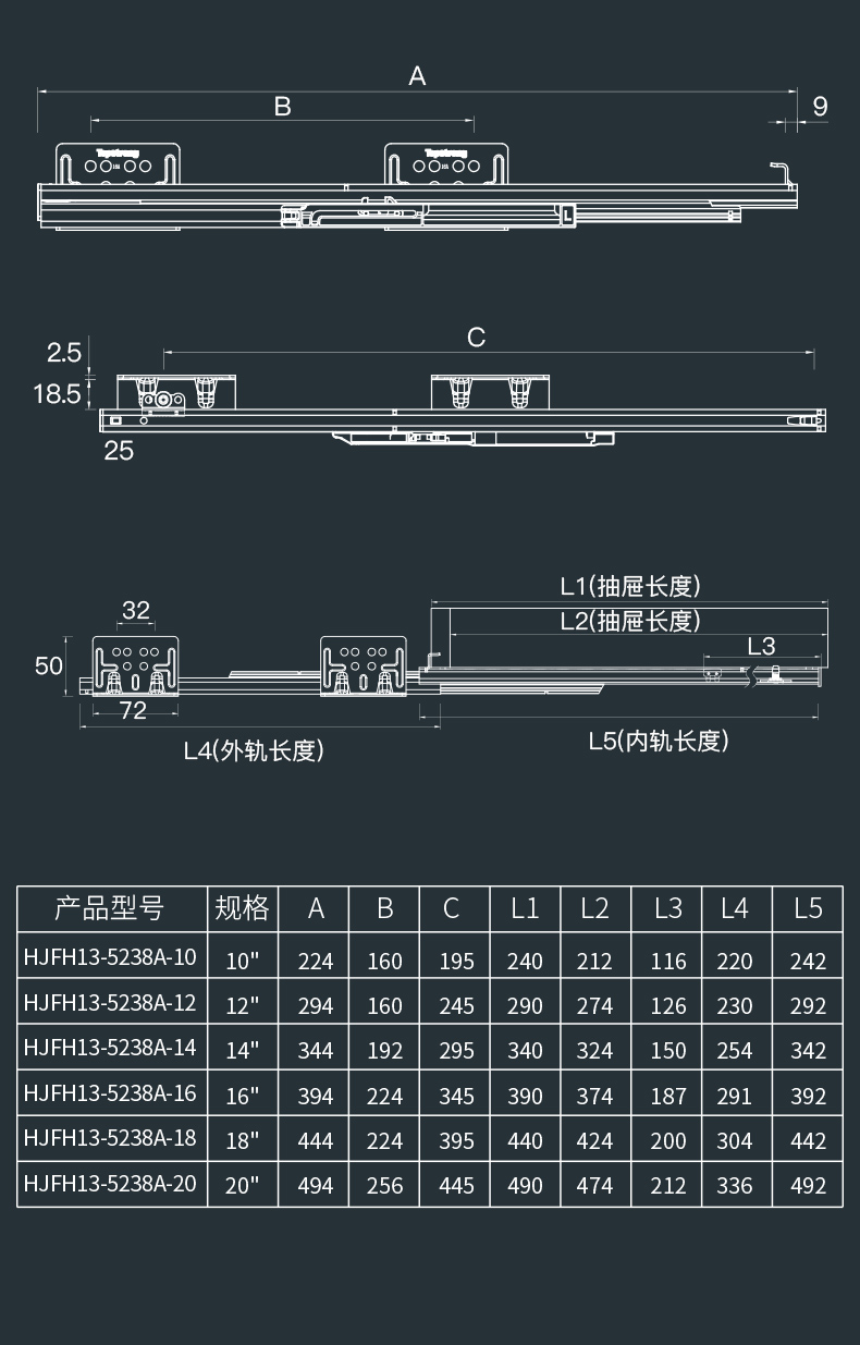 5238A/5238B/5239A/5239B三节缓冲托底轨